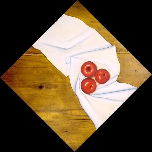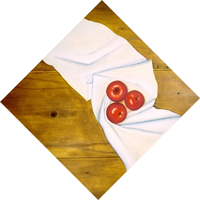 Drie tomaten 40cm x 40cm Olieverf op paneel (Klik op de afbeelding om te vergroten) |