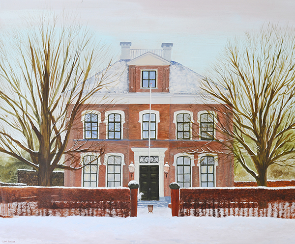 Notaris woning in wintersfeer 60cm x 50cm Olieverf op paneel (Klik op de afbeelding om te vergroten) |