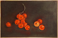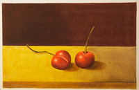 Twee kersen 10cm x 15cm Olieverf op paneel (Klik op de afbeelding om te vergroten) |