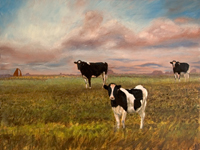 Koeien uut poldertien 40cm x 30cm Olieverf op masoniet (Klik op de afbeelding om te vergroten) |