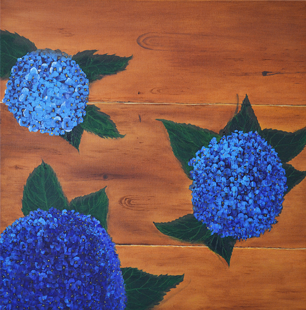 Hortensia's 60cm x 60cm Olieverf op doek (Klik op de afbeelding om te vergroten) |
