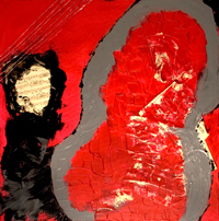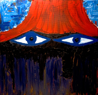 Rode hoed 80cm x 80cm Acryl op linnen (Klik op de afbeelding om te vergroten) |